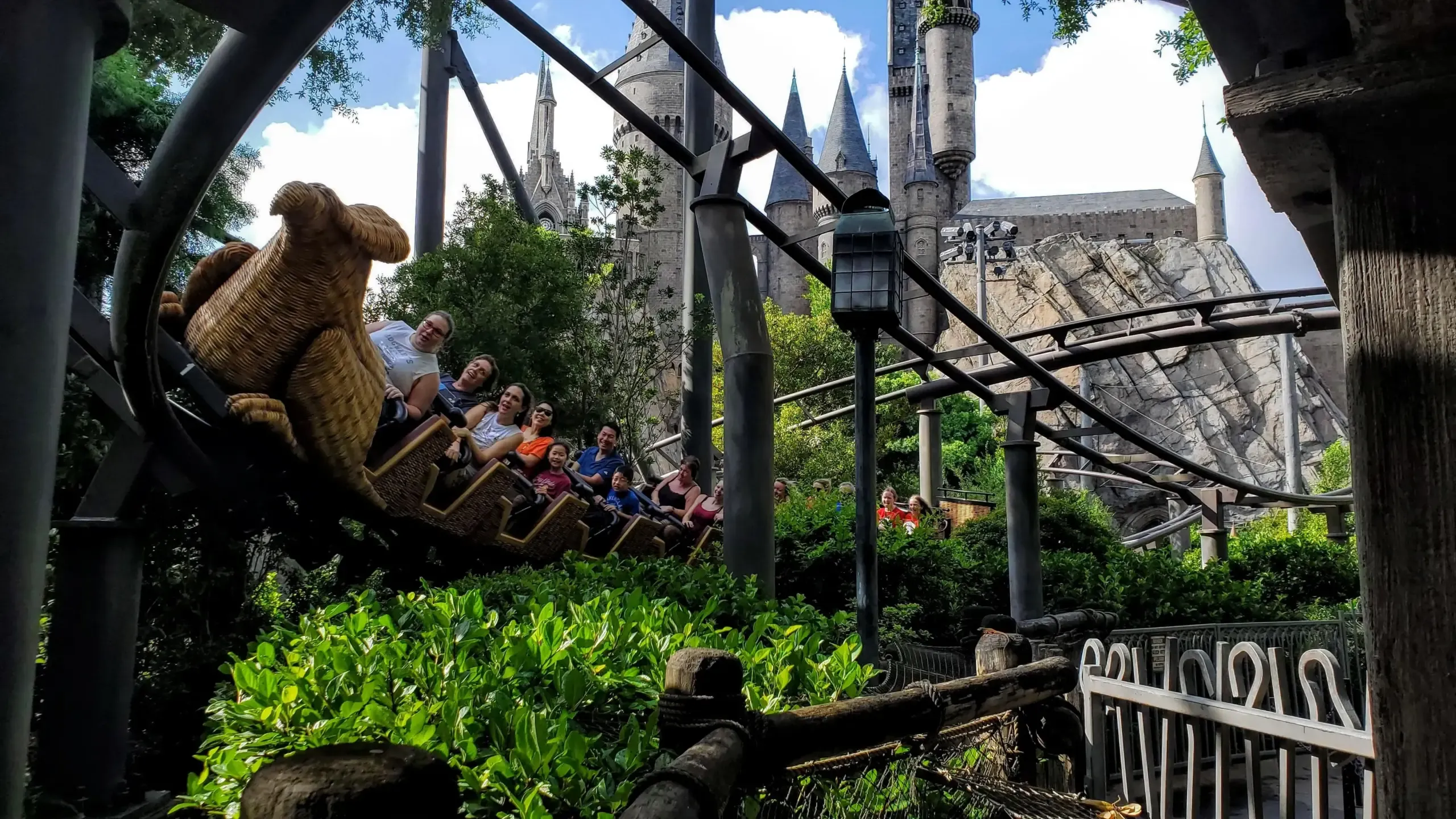 Montaña rusa familiar con vuelta sobre Hagrid y el Hipogrifo.