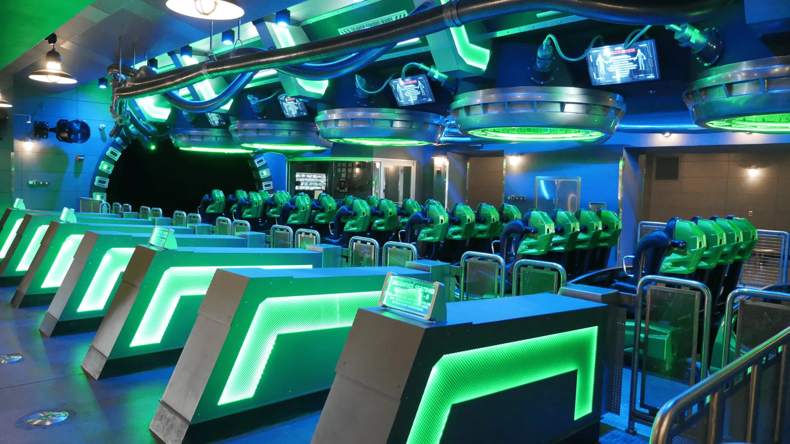 Seguí las instrucciones del Cast Member. Dejá tus objetos en los lockers si la atracción los requiere.